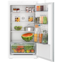 De Bosch KIR31NSE0 is een inbouw 1-deurskoelkast met EcoAirflow systeem. Hiermee verspreidt de koude lucht zich gelijkmatig en is het overal even koel. Het maakt daarom niet uit waar je je boodschappen legt. Als je uit de supermarkt komt, zet je de functie superkoelen aan en zijn je drankjes sneller koud. Je bewaart de boodschappen van een week dankzij de 3 plateaus. Je verstelt deze in hoogte, waardoor je ruimte maakt voor een grote pan tomatensoep. Zo hoef je minder te proppen. Potjes olijven en truffeltapenade zet je in de kleine deurvakken. De grote deurvakken gebruik je voor bijvoorbeeld jus d’orange. Je hebt met een geluidsniveau van 35 decibel weinig last van lawaai. Hierdoor werk je ook rustig aan de keukentafel.