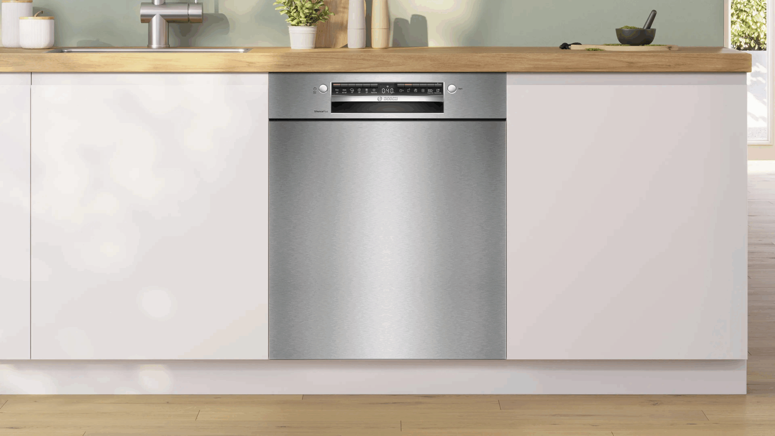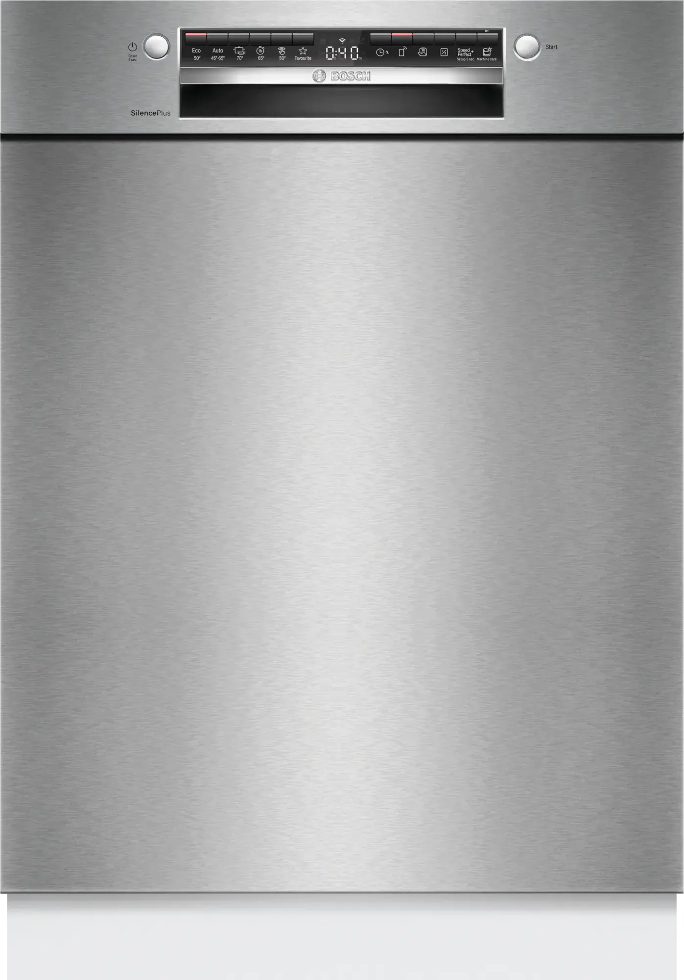 Bosch Smu4ecs10e – Onderbouw Vaatwasser – 60 Cm – 14 Couverts – Home Connect & Efficientdry – 42 Db – Energieklasse C Bosch SMU4ECS10E Inbouw Vaatwasser: Een slimme keuze voor een schone keukenEfficiënt en stilDe Bosch SMU4ECS10E is een inbouw vaatwasser die perfect aansluit bij de moderne keuken. Met een energieklasse C en een geluidsniveau van slechts 42 dB is hij zowel zuinig als stil in gebruik.Flexibel en praktischVarioFlex korven: Dankzij de flexibele korven kun je je vaat op maat indelen, zelfs grote pannen en borden passen er gemakkelijk in.Besteklade: De besteklade biedt voldoende ruimte voor al je bestek, gesorteerd en overzichtelijk.Uitgestelde start: Stel de vaatwasser in om op een later tijdstip te starten, bijvoorbeeld ’s nachts wanneer de stroomtarieven lager zijn.Resttijdindicatie: Het digitale display