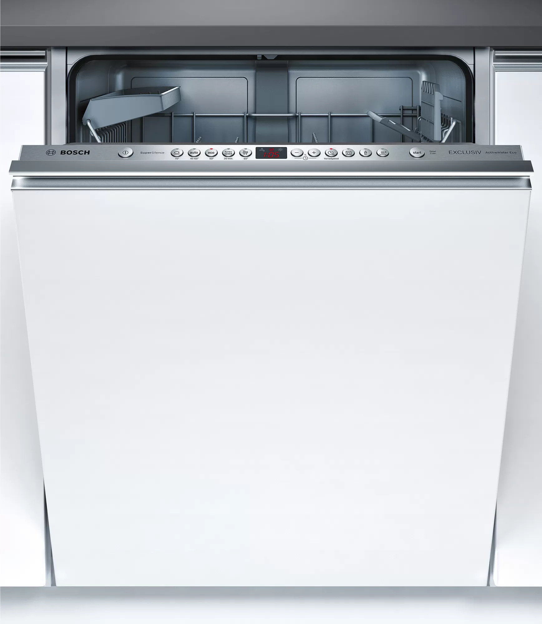 Bosch Smv85m44 – Inbouw Vaatwasser – 60 Cm – 13 Couverts – 44 Db – Energieklasse A++ Bosch SMV85M44 Inbouw Vaatwasser 60cm – 13 couverts, 44 dB, A++ De Bosch SMV85M44 is een stille en energiezuinige inbouw vaatwasser die uitstekende reinigingsprestaties levert voor huishoudens die op zoek zijn naar comfort, efficiëntie en gebruiksgemak. Deze volledig geïntegreerde vaatwasser biedt ruimte voor maar liefst 13 couverts en beschikt over diverse handige functies zoals uitgestelde start, resttijdindicatie en een energiezuinig ecoprogramma. Dankzij het lage geluidsniveau van slechts 44 dB draait deze vaatwasser bijzonder stil, ideaal voor open keukens of gebruik tijdens de nacht. De bestekkorf in de onderkorf zorgt voor een praktische indeling, terwijl het kinderslot en de waterbeveiliging bijdragen aan veilig gebruik. Ook aan