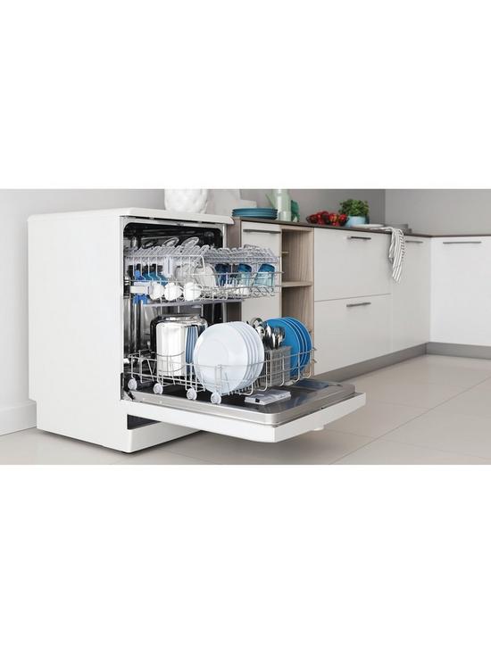 Indesit D2fhk26 – Vrijstaande Vaatwasser – 60 Cm Breed – 14 Couverts – Uitgestelde Start – 46 Db – Energieklasse E Indesit D2FHK26 – Vrijstaande Vaatwasser De Indesit D2FHK26 is een vrijstaande vaatwasser die efficiëntie en gebruiksgemak combineert voor de dagelijkse vaat. Met een capaciteit van 14 couverts is er voldoende ruimte voor de vaat van een groter huishouden. Dankzij het geluidsniveau van slechts 46 dB kunt u de vaatwasser op elk moment laten draaien zonder geluidsoverlast. Belangrijkste kenmerken Ruime capaciteit: Met ruimte voor 14 couverts kunt u eenvoudig de vaat van de hele dag of van een diner met gasten in één keer reinigen. Stil in gebruik: Een geluidsniveau van 46 dB zorgt ervoor dat de vaatwasser zijn werk doet zonder storend aanwezig te zijn, ideaal voor open keukens. Uitgestelde Start: Plan een wasbeurt op een moment dat het u uitkomt.