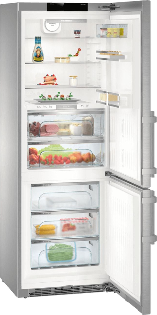 Liebherr Cbnes5778 Koel-vriescombinatie 201cm De Liebherr CBNES5778_999407451 Koel-Vriescombinatie 201cm is een hoogwaardig, vrijstaand apparaat dat de perfecte balans biedt tussen gebruiksgemak, energie-efficiëntie en een ruime opbergruimte voor zowel je gekoelde als ingevroren producten. Met een indrukwekkende totale netto capaciteit van 393 liter biedt deze koel-vriescombinatie een ruime opslag voor al je boodschappen, en is hij geschikt voor huishoudens van middelgrote tot grote omvang.Belangrijkste Kenmerken:Totale Netto Inhoud van 393 Liter: De Liebherr CBNES5778 biedt een koelkast van 281 liter en een vriezer van 112 liter, wat voldoende ruimte biedt om je etenswaren op een georganiseerde manier op te bergen.Energie-efficiëntieklasse C: De energie-efficiëntieklasse C maakt de Liebherr koel-vriescombinatie relatief energiezuinig,