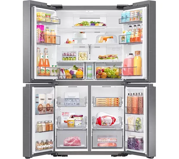 Samsung Rf59c70tes9 Amerikaanse Koelkast- Twin Cooling Plus – No Frost Technologie | 425 Liter – 201 Cm Samsung RF59C70TES9: Slim, Stijlvol en Flexibel BewarenMaak kennis met de Samsung RF59C70TES9, een revolutionaire koel-vriescombinatie die de perfecte balans vindt tussen elegantie en functionaliteit. Dit is de eerste French Door-koelkast die is ontworpen om naadloos in een standaard keukenniche van slechts 60 cm breed te passen, zonder concessies te doen aan de inhoud. Met zijn geavanceerde technologieën en aanpasbare opbergruimte is dit de ideale oplossing voor de moderne, stijlvolle keuken.Ongeëvenaarde Koeltechnologie en FlexibiliteitDe Samsung RF59C70TES9 is uitgerust met het geavanceerde Twin Cooling Plus™-systeem. Dit systeem gebruikt twee aparte verdampers om de koel- en